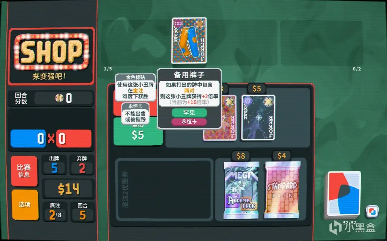 石头牌,一张给50筹码。以及一些其他小丑的触发方式,后文遇到了再叙述。