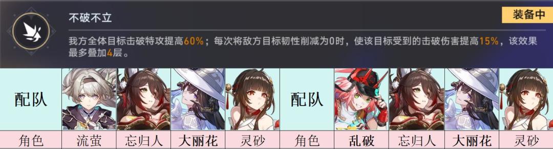 再来看看三个我方的buff。其一我方全体提高击破特攻,怪物弱点击破后施加击破易伤,可叠加四层。推荐给击破队选择。