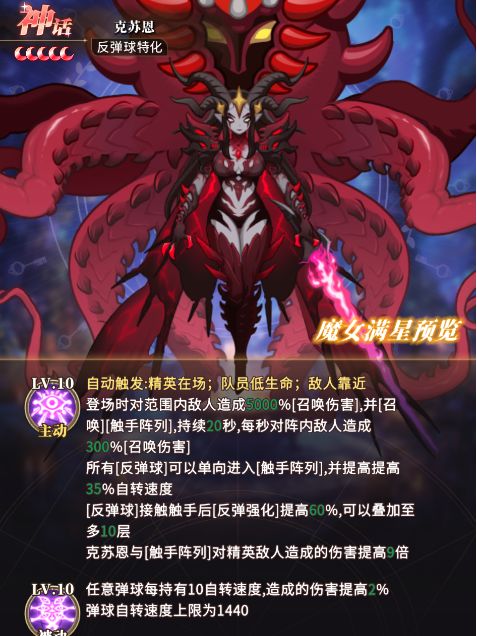 ⭐主动技能:克苏恩登场造成召唤伤害,并召唤【触手阵列】;所有反弹球进入【触手阵列】,并提高自转速度。反弹球接触触手后反弹强化提高。