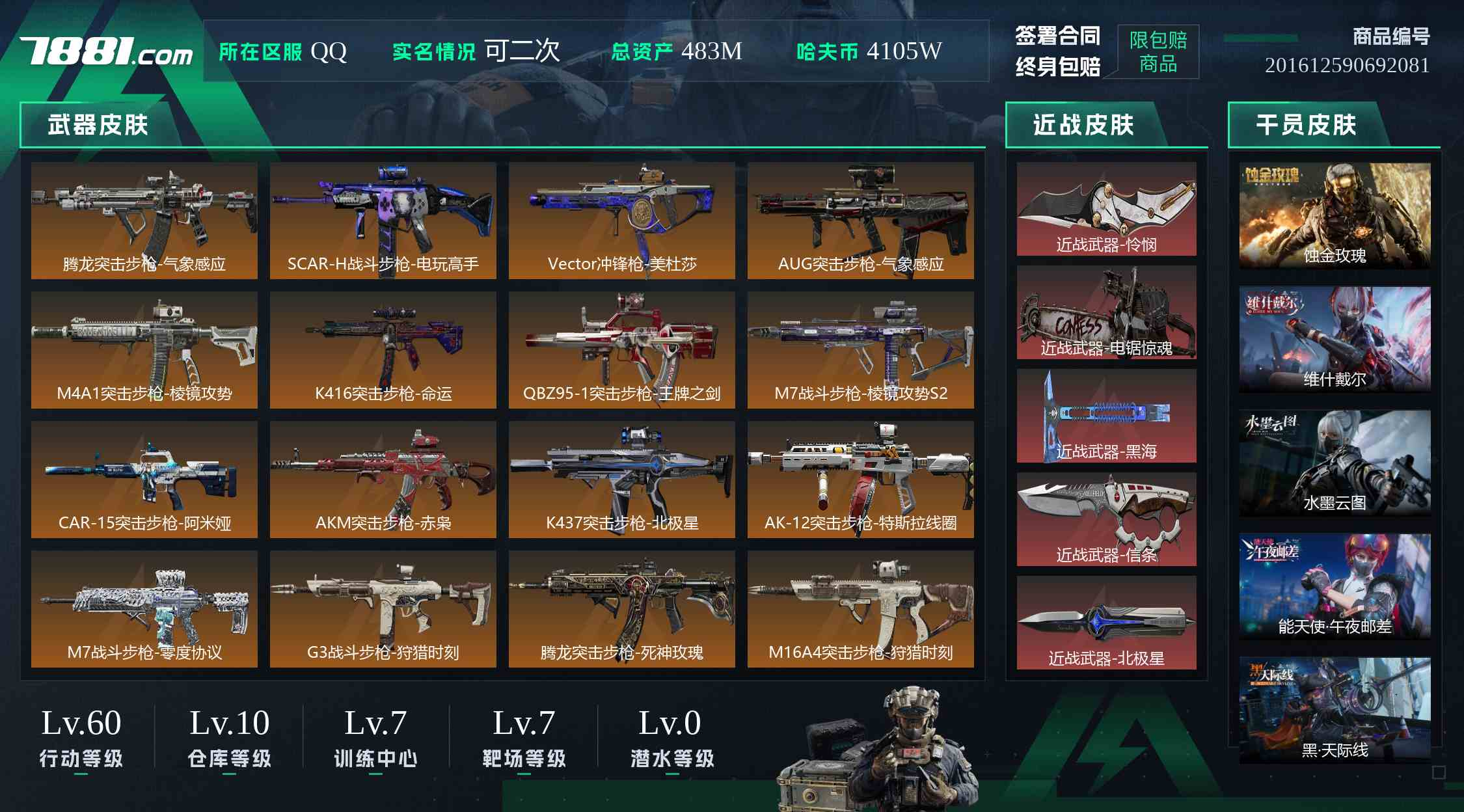 满仓满体满红皮,6个刀皮、8个典藏枪皮,我看平台上他挂的120张,如果按市场价来说他这个号怎么样