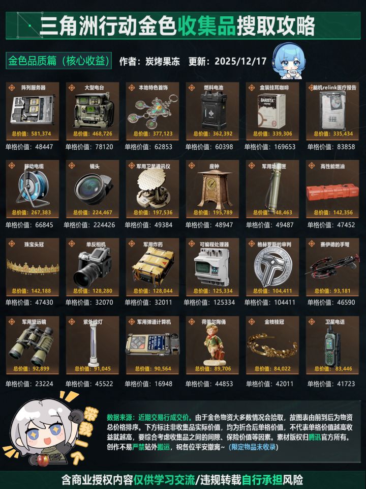 三角洲行动金色物资价值榜