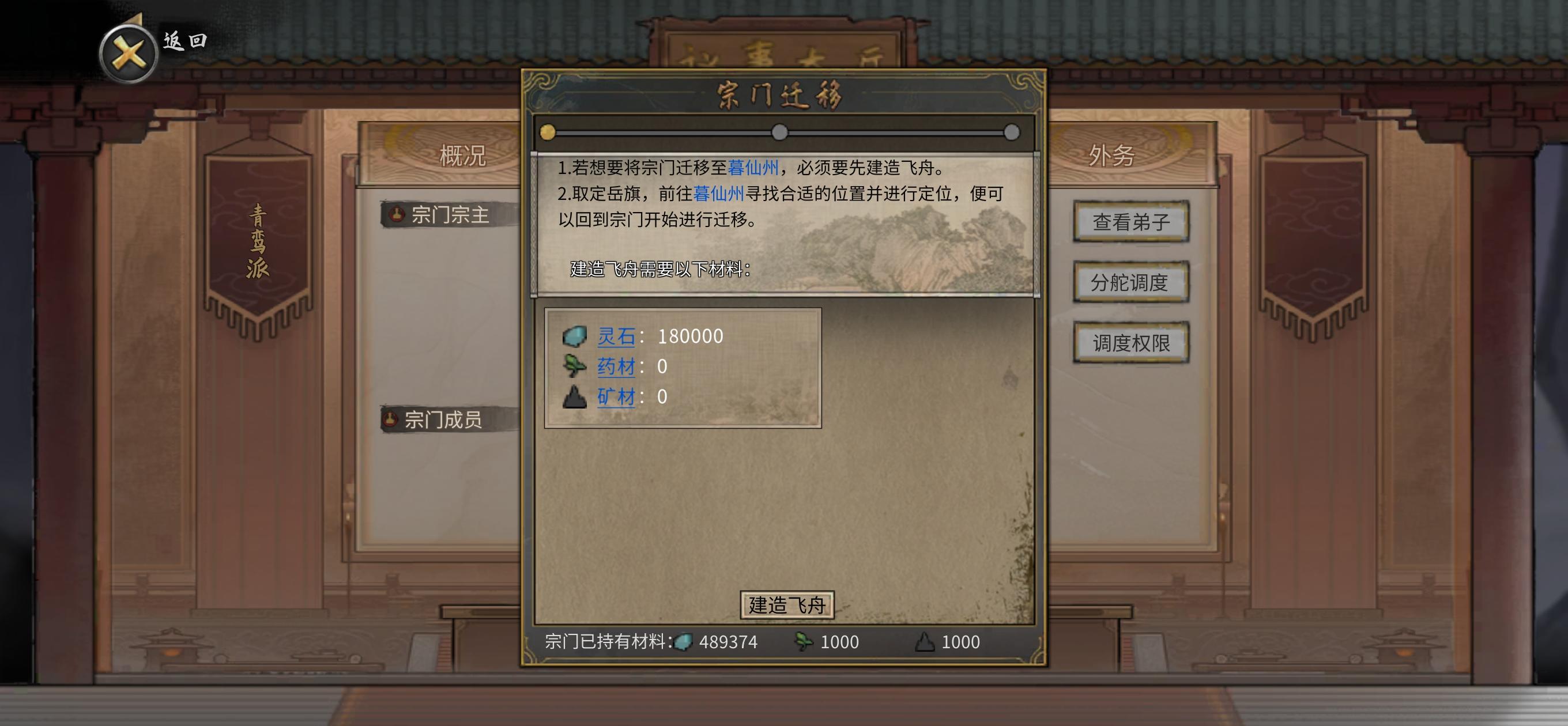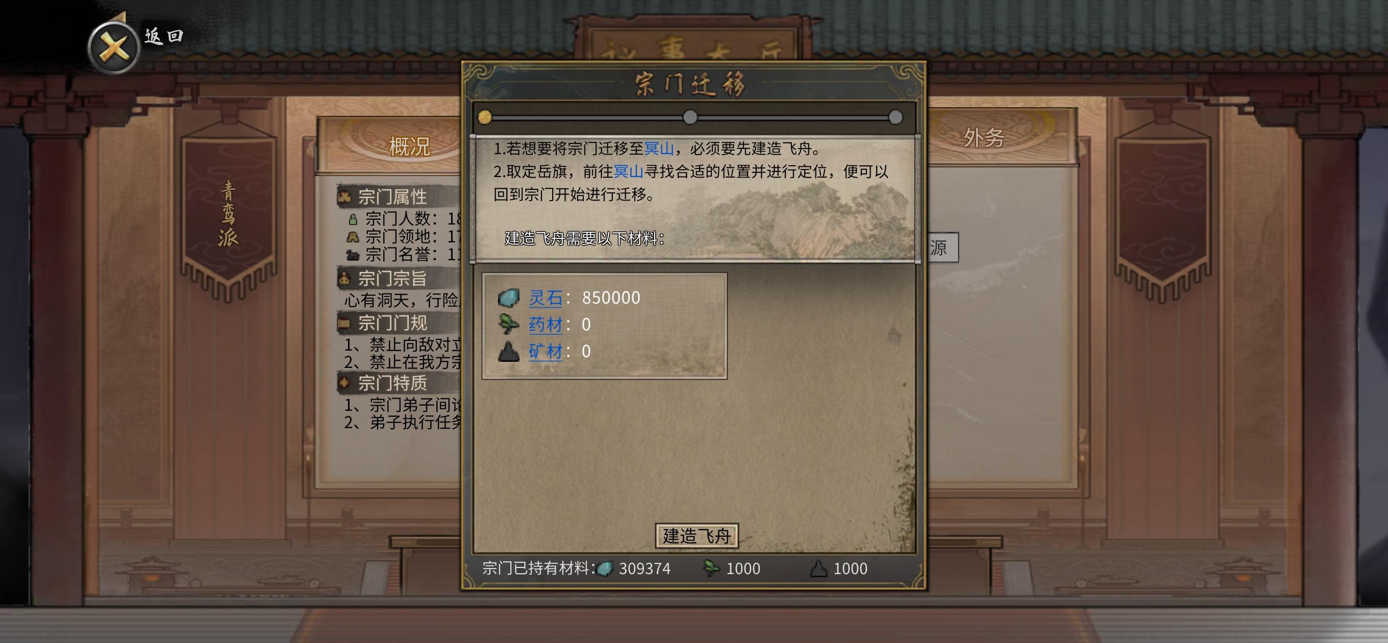 ★第四十二步:直接进入议事大厅-宗门迁移-建造飞舟