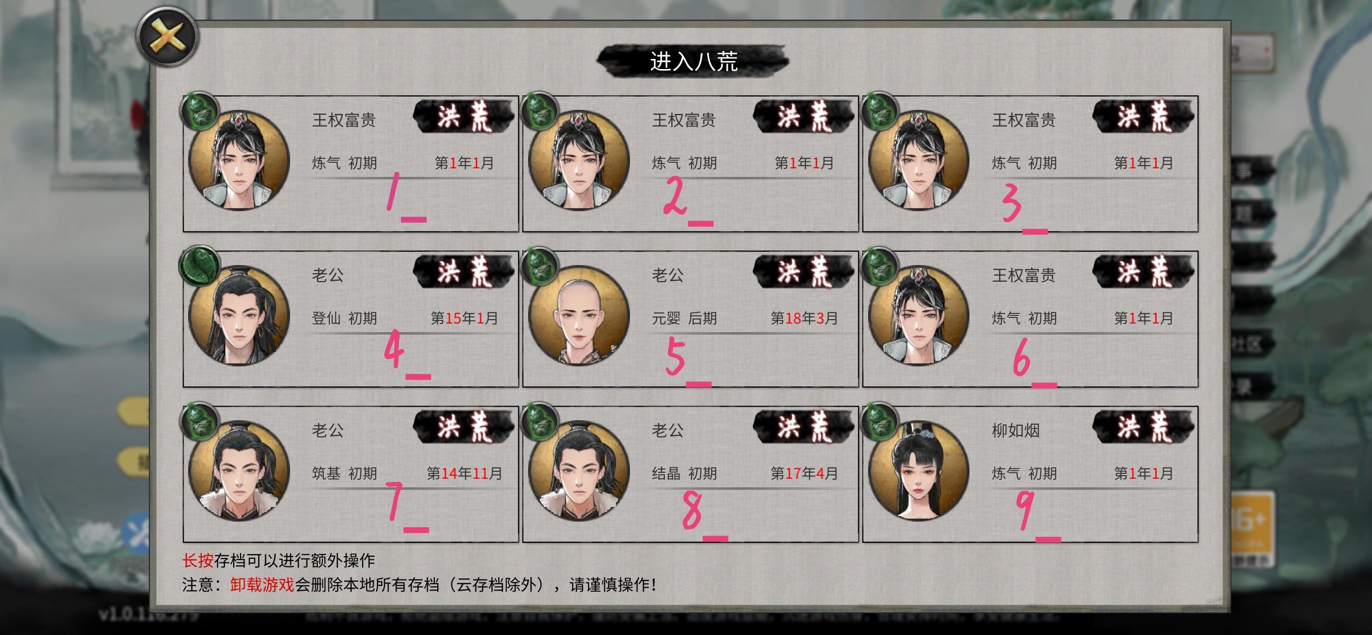 ★第八步:返回主界面,回到菜单位置,对应下图的1-9,看自己是第几个存档 (我这边是第一个存档)