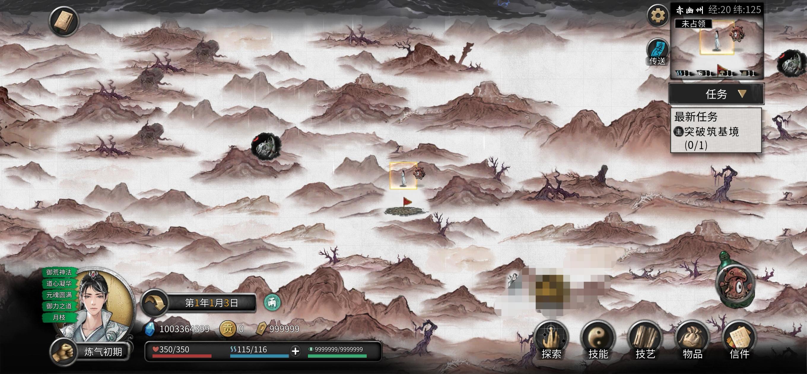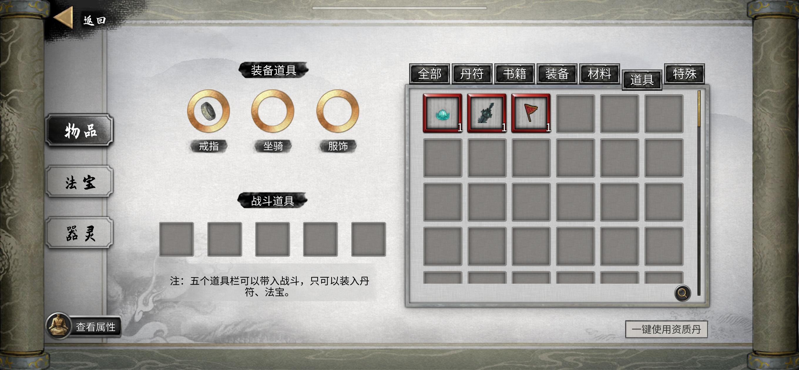 进去到游戏后,我们会看到,我们回到了没有埋下定岳旗的档。而且背包里也能找到定岳旗。