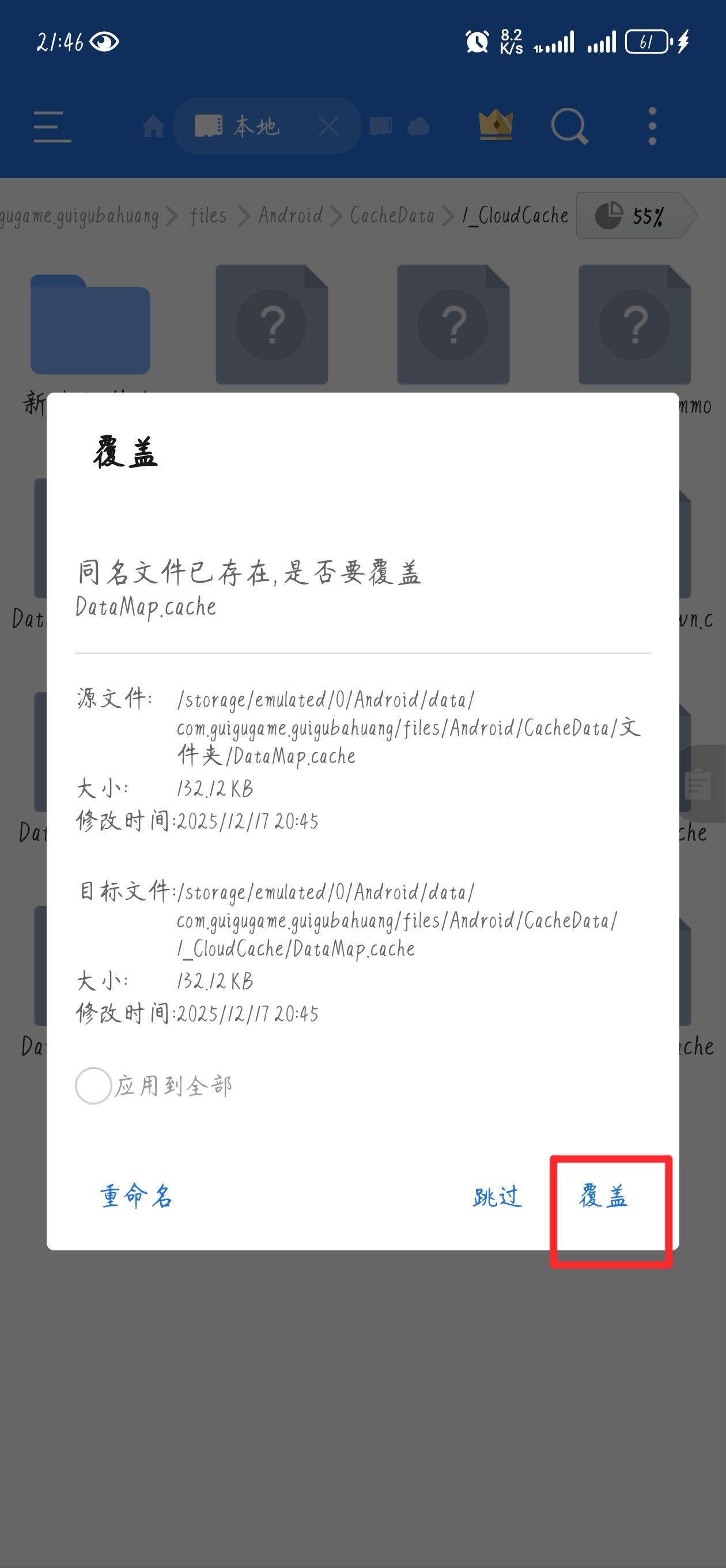 ★第三十一步:长按之前复制过来的“DataMap.cache”文件
