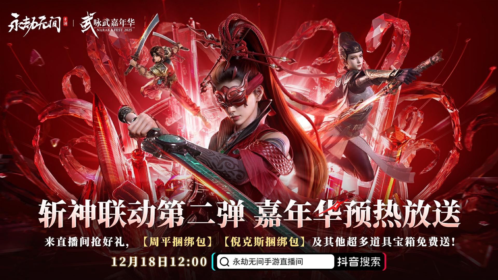 12月18日12:00锁定永劫无间手游直播间,最新联动外观捆绑包等你来抢!