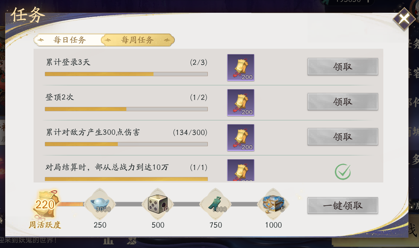 测试期间,开设各类挑战任务,完成每日/每周任务获得活跃度,活跃度可兑换凌霄秘珍、方舆馈礼等豪华游戏宝箱,内含限定使君皮肤等奖励。
