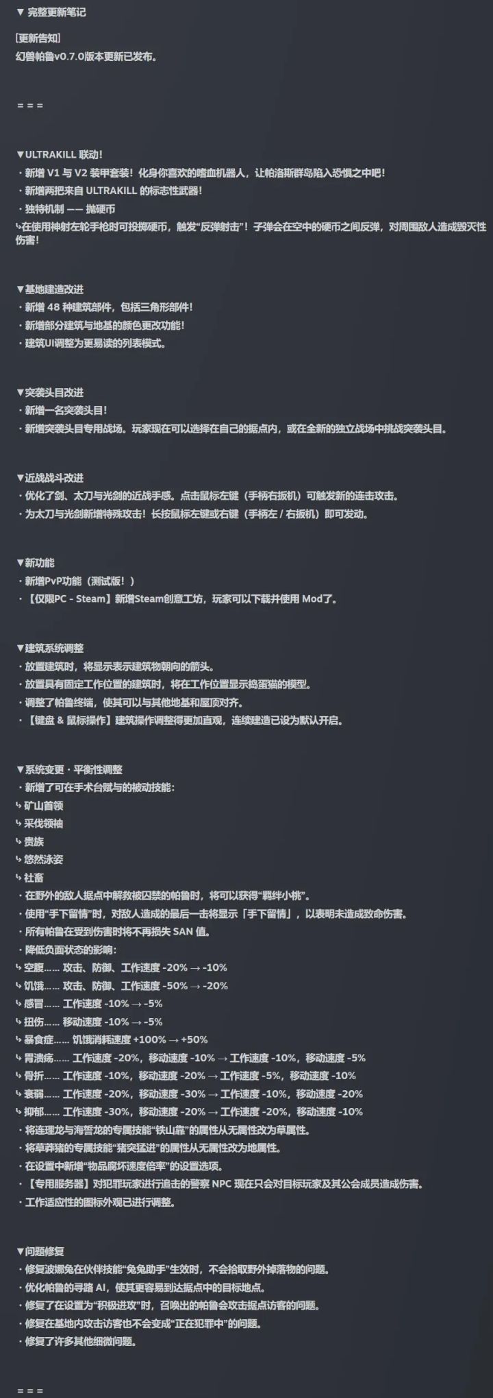 《幻兽帕鲁》大版本更新,PVP和mod两手抓