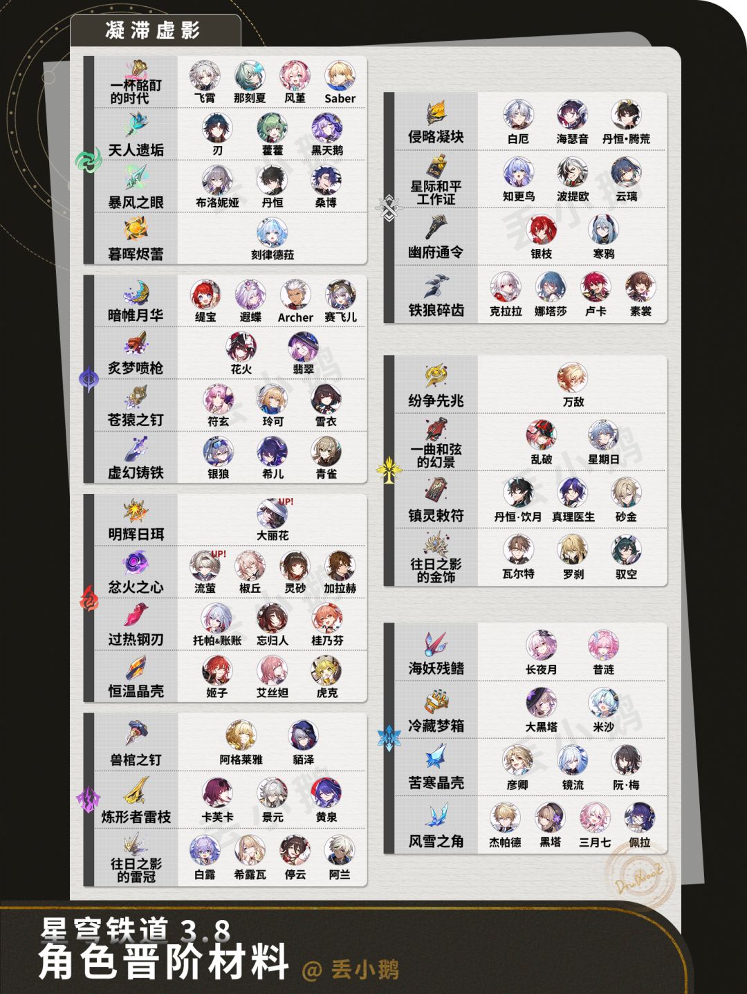 为你带来【星穹铁道3.8】全角色晋阶行迹材料~