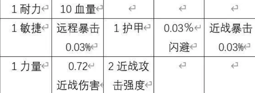 1元素=10力量=20攻强=12秒伤 46敏=1暴击