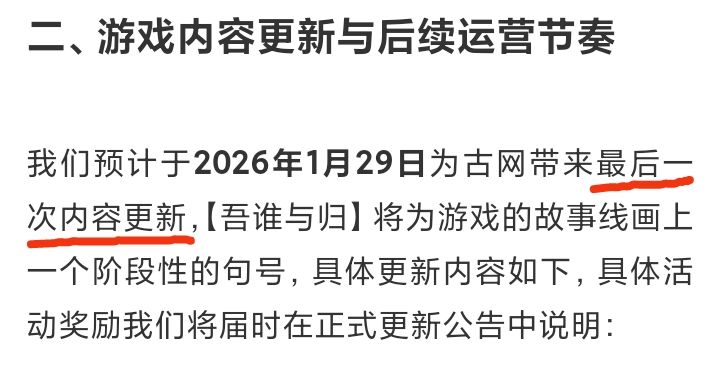 其次是,预计于2026年1月29日为古网带来“最后一次”内容更新!也可以算是停更预告了……