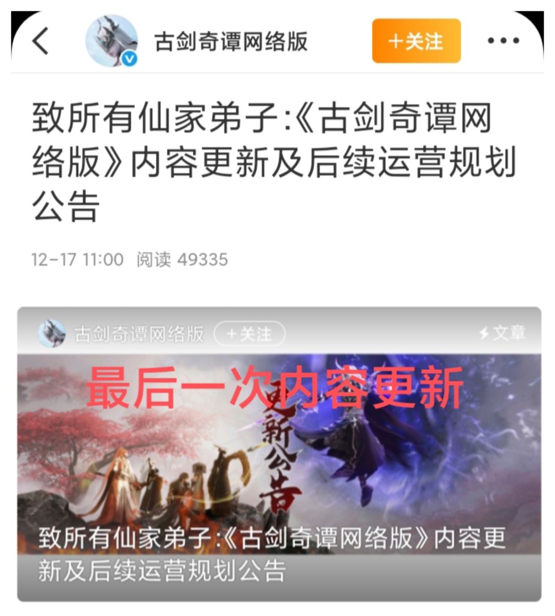 停更预告❓《古剑奇谭网络版》的最后一更😂