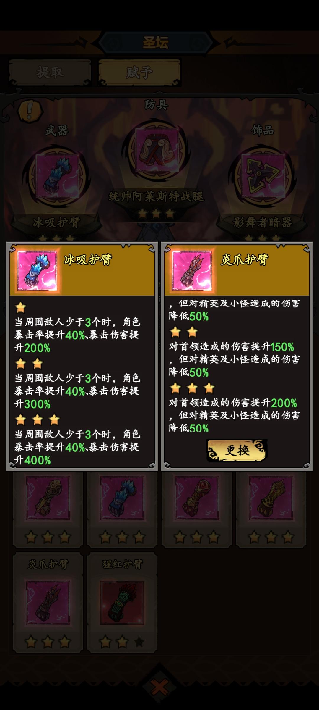 虽然武器好多都有100%加成,但前中期应该比不上暴击手套的加成的。不过我这基本上快淘汰这个了,下面说