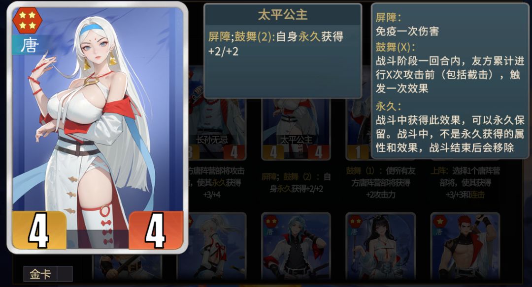 ★太平公主统帅前期强烈推荐拿一张她自己,养大之后可以喂给其他核心。