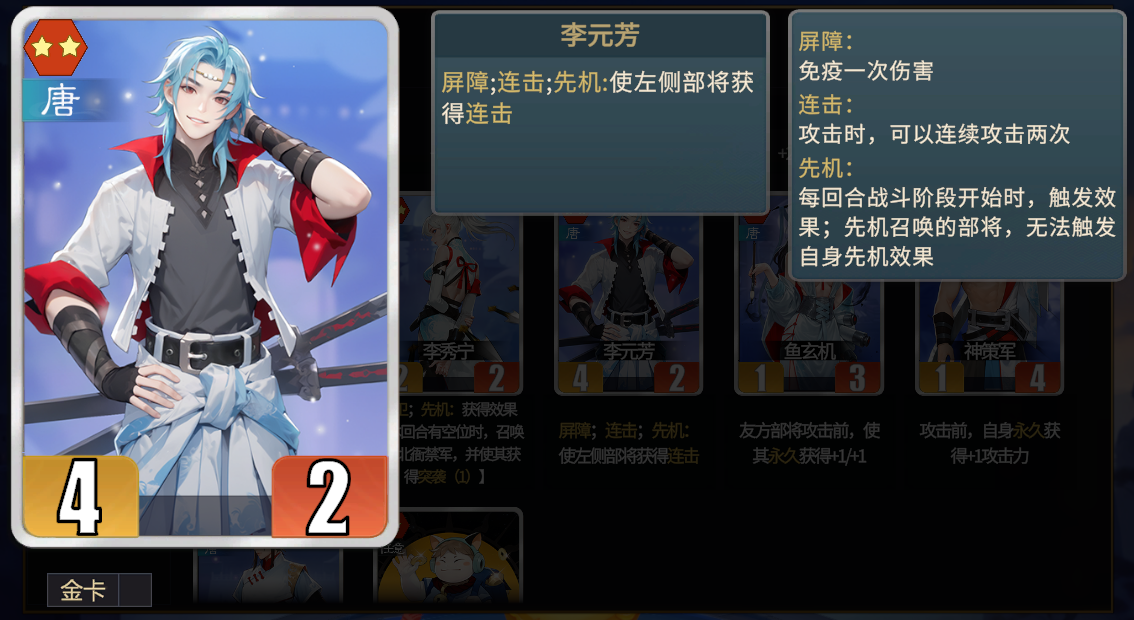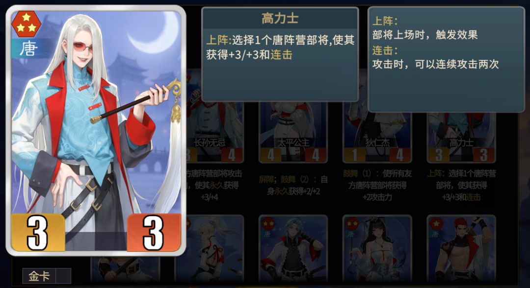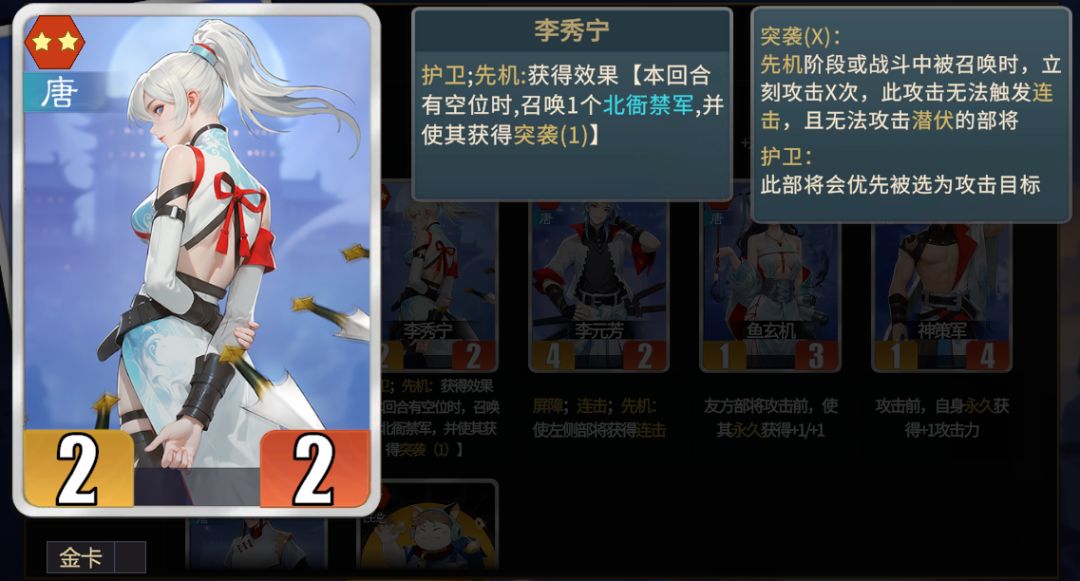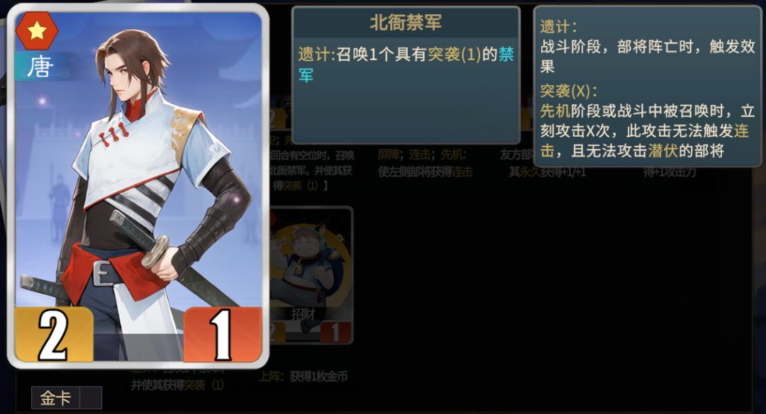 ①北衙禁军能够提供两次频率,并且召唤的禁军还带有突袭,初期战斗力非常可观,是武则天开局的最佳选择之一。