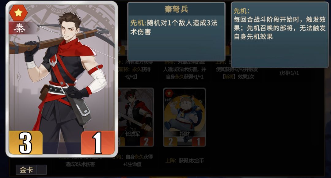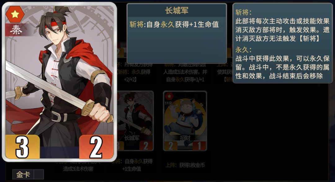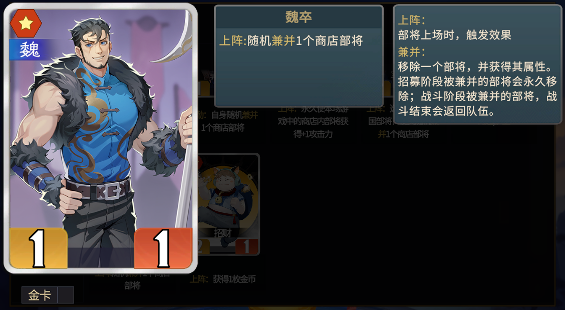 ★招财多用作上阵流派的理财工具,金青龙+招财可以获得3枚金币+招财本体,可以搭配麒麟卖掉加全队属性,同时招财也能作为魏将,触发许褚的兼并。