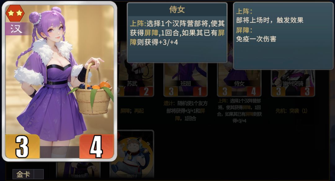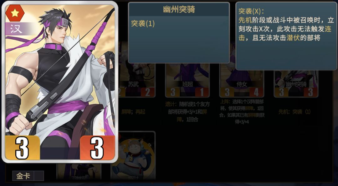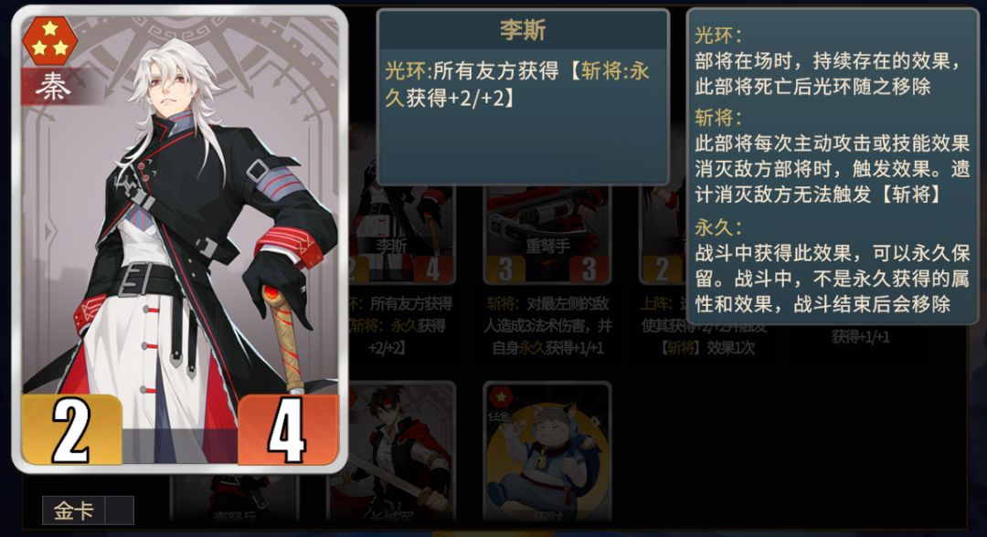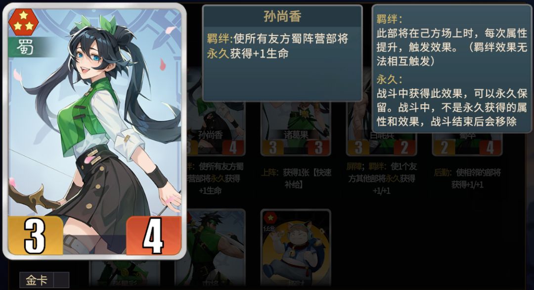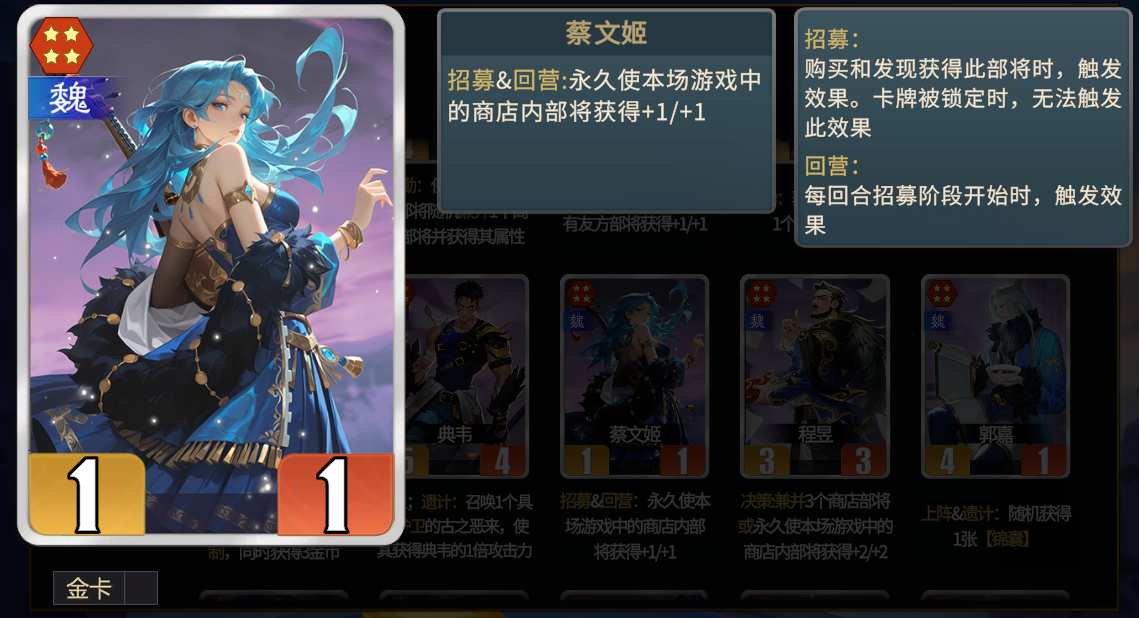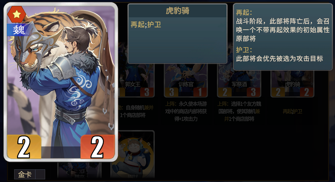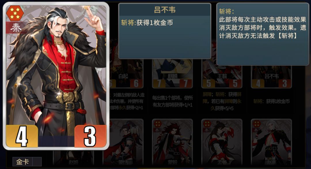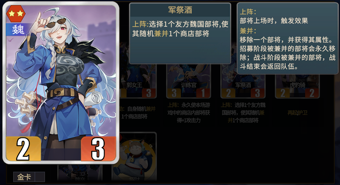 ★战略性卡牌。多用于五级、六级商店时卖掉寻找核心部将。