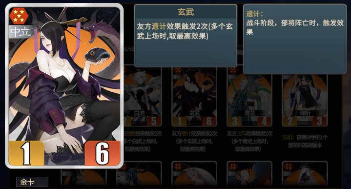 ★九尾+饕餮+玄武都是中立阵营,使用时要注意场上部将数量,避免给到中立牌。