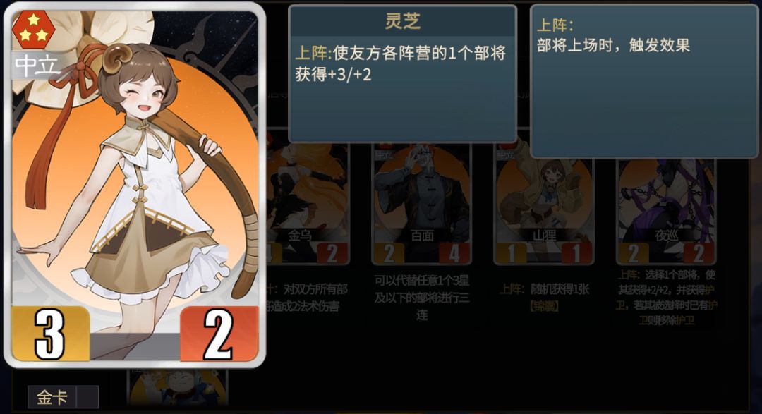 ★上阵流派的重要组件,作用与山狸类似,但是可以持续获得锦囊,前期可以入手积累资源用来过渡。