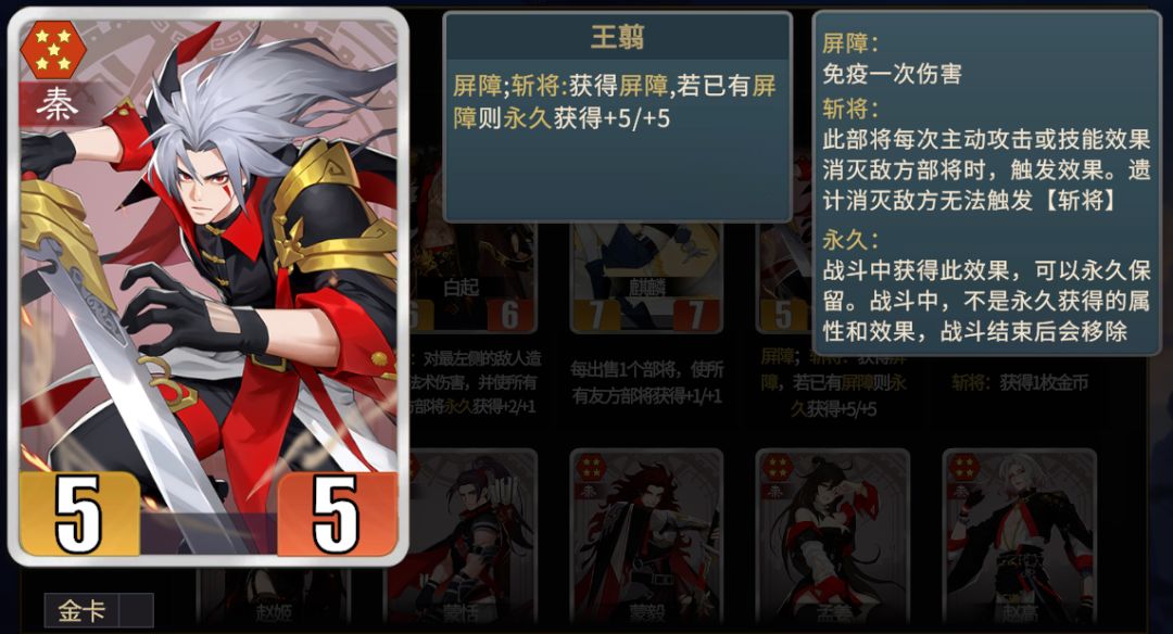 ④秦阵营给王翦护卫,前期保护我方蒙毅、白起、芈月生存,后期可能创造单刷奇迹。