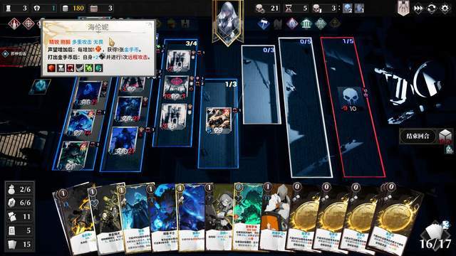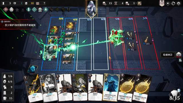 每个道具只能运用一次,成功可以获得建筑卡或是攻击等不同效果的卡牌。 我第一次体验选中了一支使用魔法的军队,属于公理流派,得到了三张新的卡牌,英雄露娜拉进场后增加手牌上限,并且抽卡后自身增加远程攻击还进行1次远程攻击,还会在玩家回合开始时减少补给需求,但是打出后会+2补给需求。