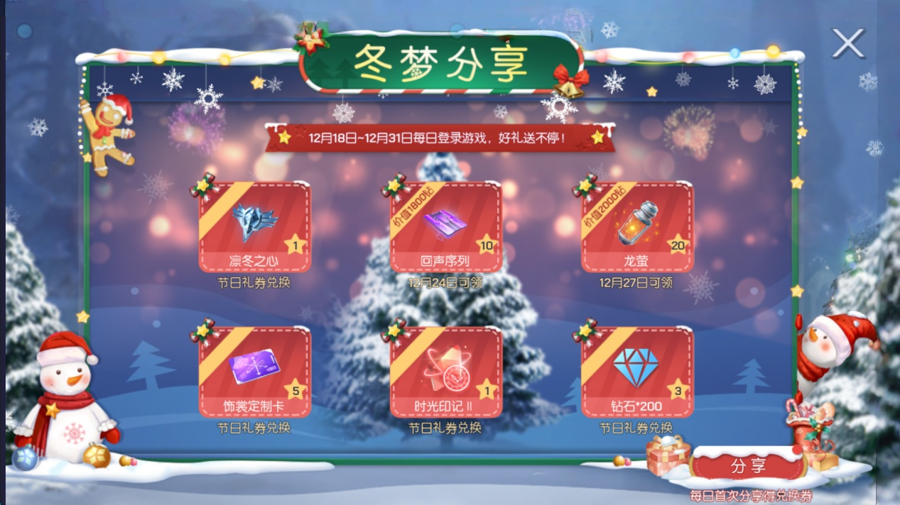 12月18日6:00-12月31日24:00期间,每日登录及达到指定活跃度,即可领取龙萤、回声序列、天命结晶、4级龙蜕精华、4级龙蜕凝液、龙威铸铁、香伴时刻礼券等好礼~
