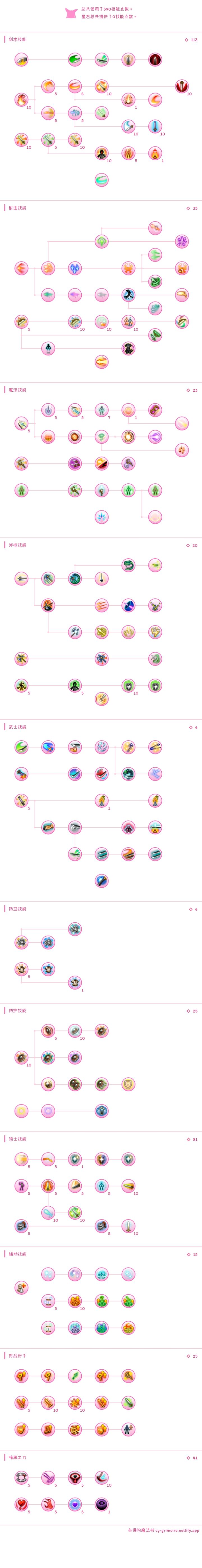 目前满级加千战能刚好拥有390技能点,缺少技能点可以在后续技能解析处选择取舍。
