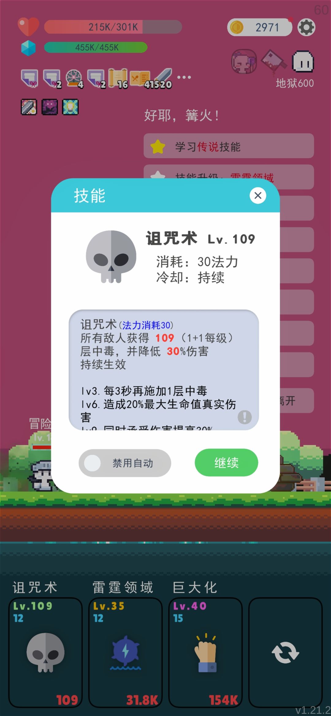 而诅咒术可以自动给所有怪上毒,层数跟着技能等级走,所以诅咒术越高越好