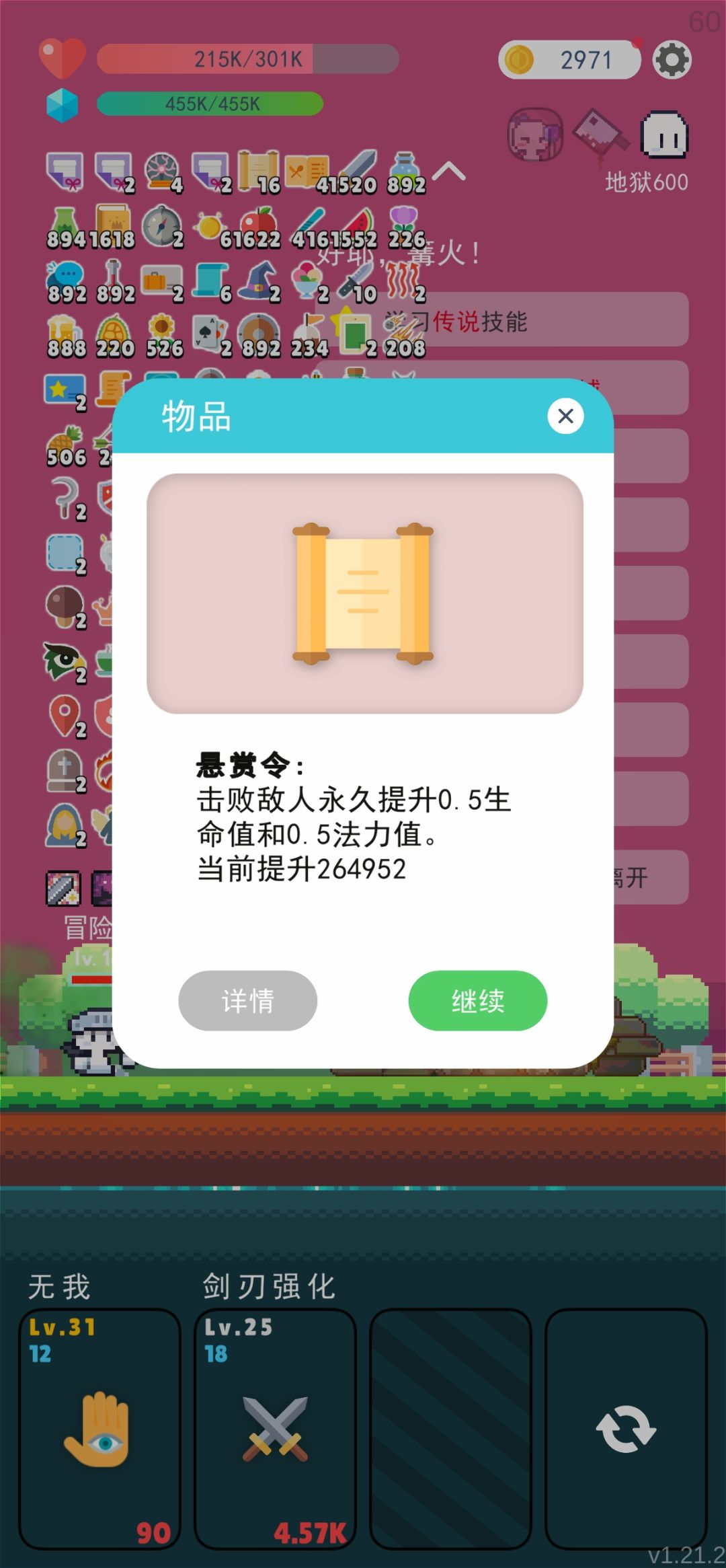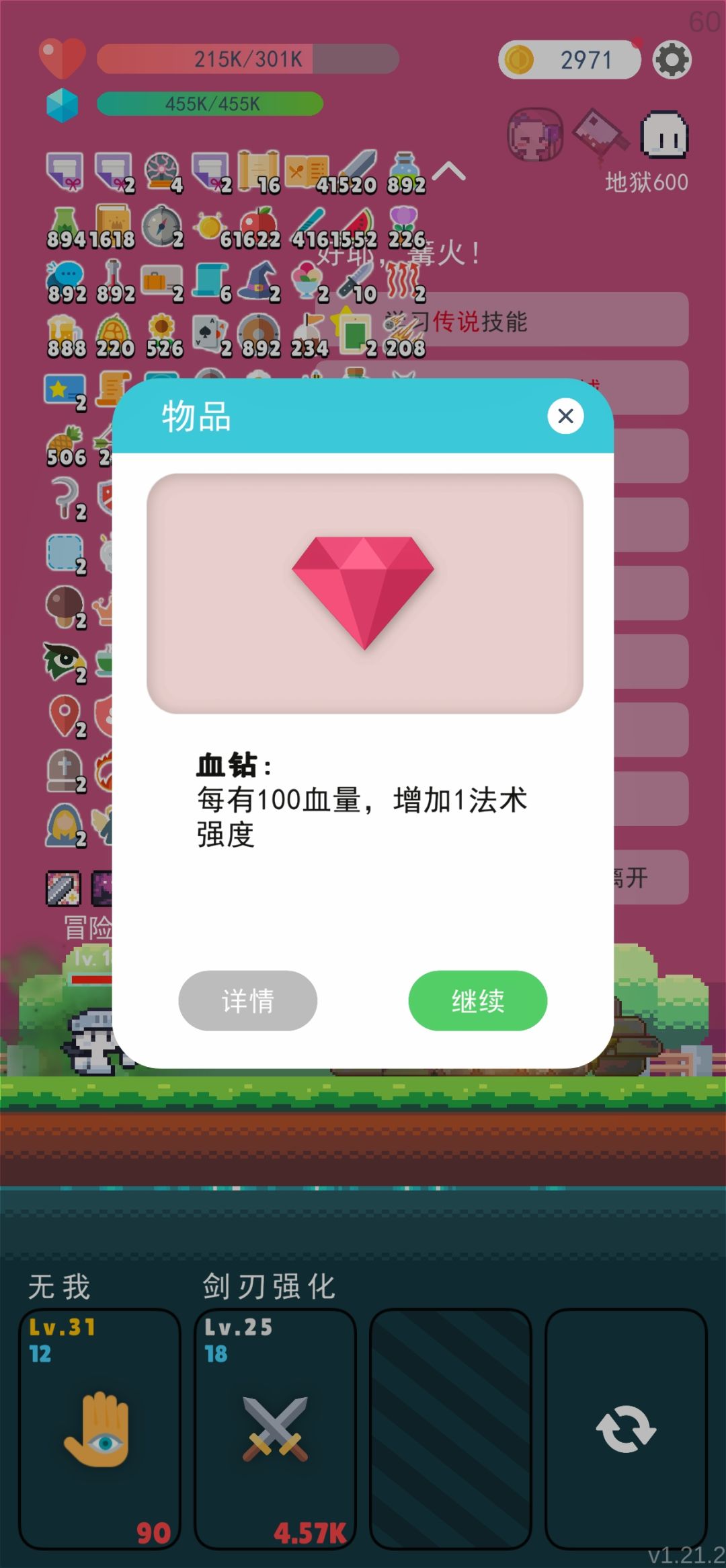 拿到上面这些条件就可以平推了,很多时候怪都没看到就死屏幕外了,不过有两个道具最好别拿,魔法球和魔盒,这两看着挺强,实际上会有概率把最大化和魔法防护给卡掉导致没效果,然后暴毙#单机游戏 #冒险者的rogue之旅 #冒险者的rogue之旅攻略 #游戏推荐