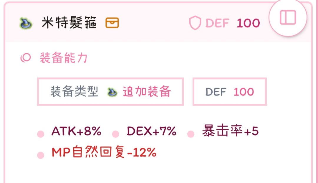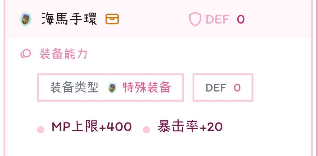 暴击率问题:衣服29,人物基础25,好战分子5,爱德华10,海马20,暴击料理30,邪恶蕾菲娜12,29+25+5+10+20+30+12=131,如果有怪点心魔法盾还可以补25暴击,131+25=156,野王普遍20抗爆,目前最高的也就是卡斯的60抗暴,已经能足以应付所有野王和大部分BOSS了。(对于正常使用来说暴击已经是不缺的了,可以,可以根据自己的使用场景上尉龙就好。)