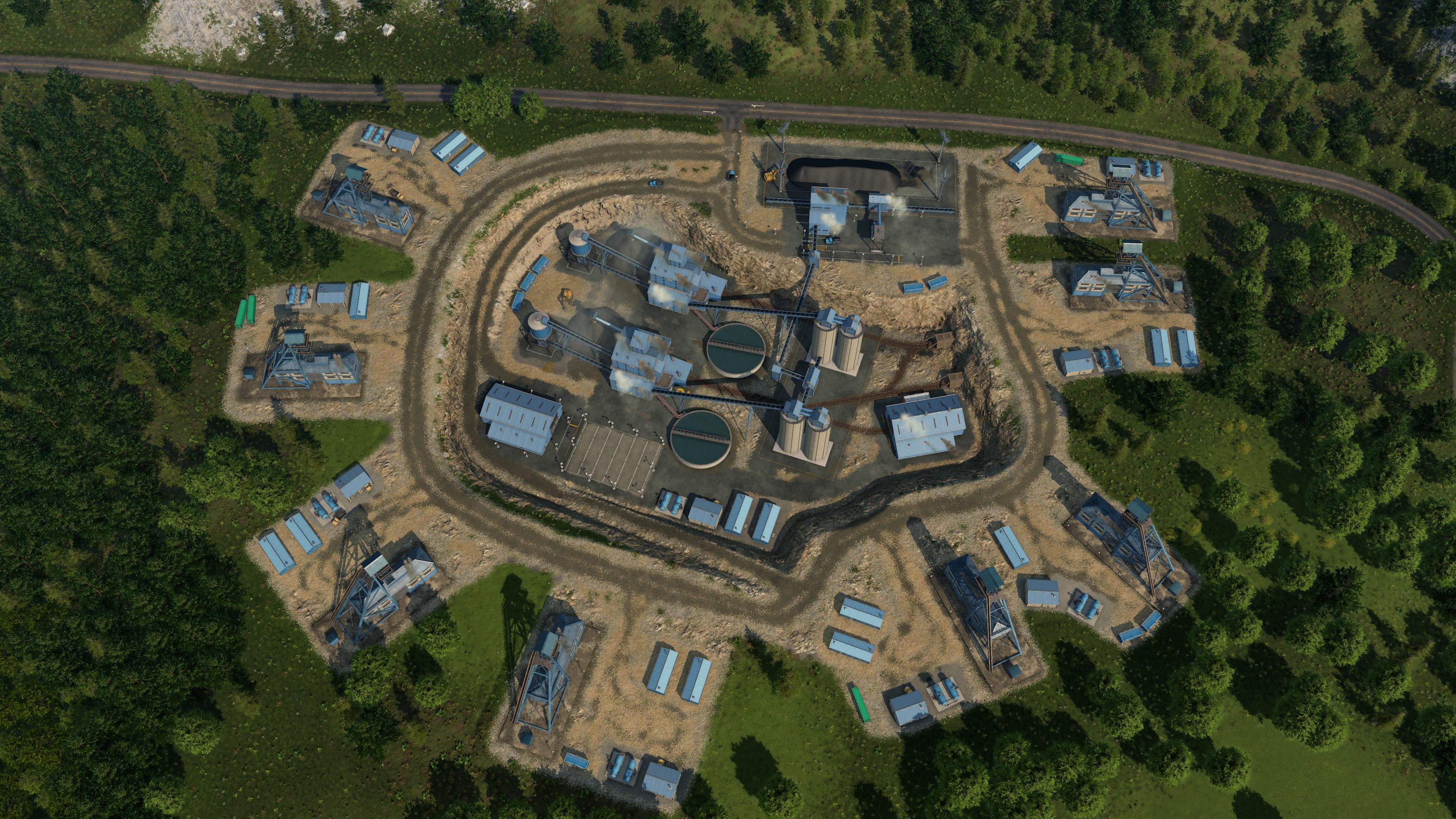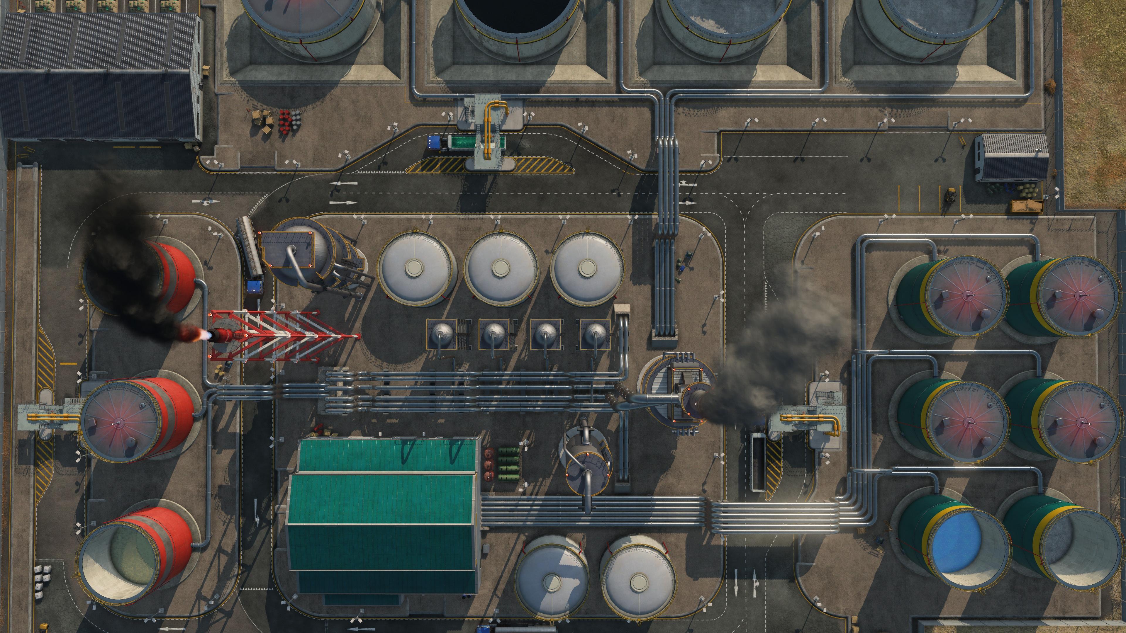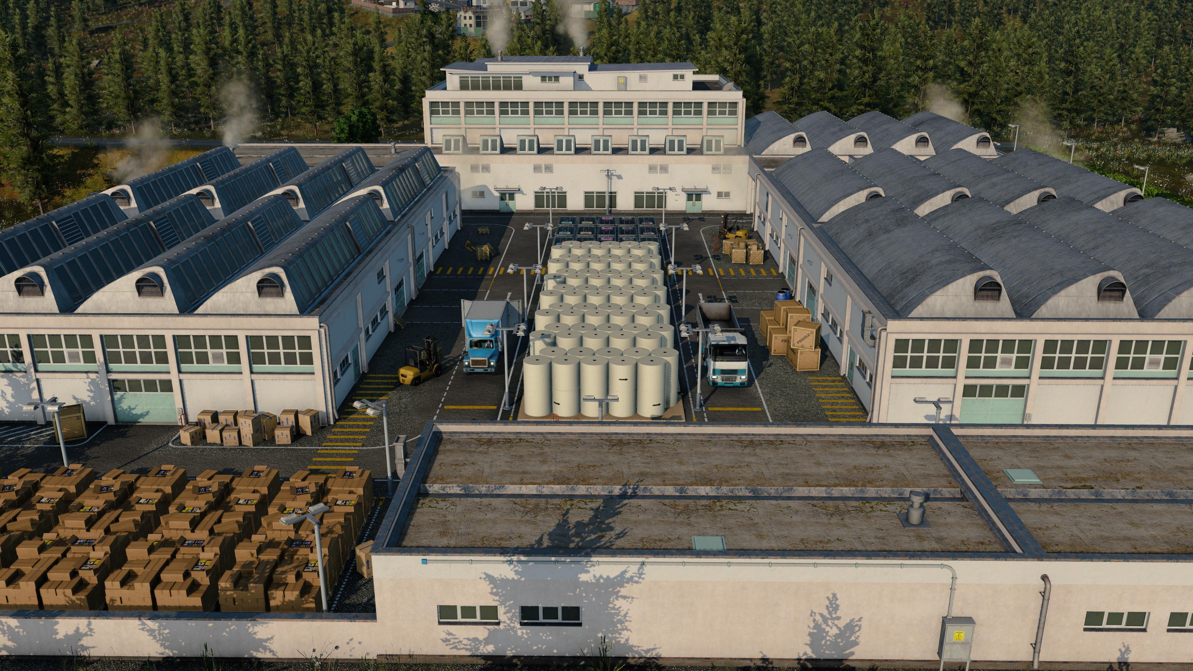 本作在工厂部分最大的变化是工厂无论大小,都会在厂区内自带一个小型货场和内部道路供车辆装卸货物以及行驶,而不必像 2 代那样必须在厂区门口建设一个专门的货场才能开始运输工作。这在初期能够帮玩家节约不少资金,并且显著减轻规划路线的复杂度 —— 你可以直接打开路线菜单,点击两次把原材料基地和工厂连接起来,然后再去沿线合适的位置建造一座车库并购买对应货物类型的货车,一条最简单的物流路线就搭建完成了,省略了很多步骤和学习成本。