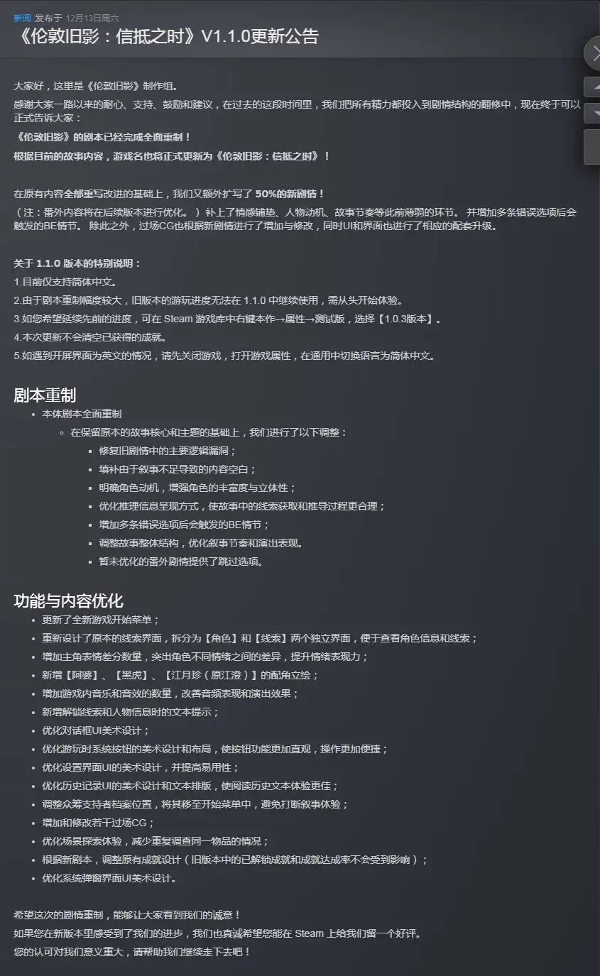《伦敦旧影:信抵之时》--上线一个月剧情重写150%?那很酷了...