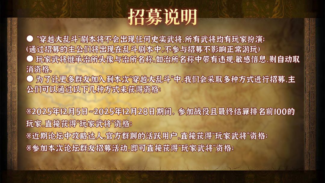*为尽可能确保主公们顺利参加招募,建议大家参与本次论坛招募活动哦!