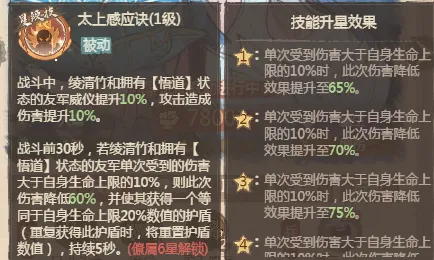 (二) 核心机制1、绝情状态:己方阵容仅1名外域武者/方士时触发,绫清竹攻击伤害+10%,并解锁“悟道”效果。2、悟道状态:触发“绝情”后,友军攻击力最高者获得等同于绫清竹25%攻击力的加成,是核心输出增幅点。(三)技能解析1、主动技·上清剑诀:攻击生命比例最低的2名敌人,造成200%攻击力物理伤害,有50%概率驱散目标1个增益效果。三解后可驱散更多增益,对敌方主C和核心僚属威胁较大。2、被动技·太清仙元:绫清竹威仪提升30%,敌方全体受到攻击、罪状、中毒伤害增加20%。战斗开始时,使敌方攻击最高的2名角色攻击降低12%(持续20秒),并触发“绝情”“悟道”状态。3、主动技·太上真解:攻击生命比例最低的2名敌人,造成160%攻击力物理伤害。若处于“绝情”状态,有50%概率使目标法术减伤、物理减伤、伤害减免效果降低30%(持续8秒),同时为“悟道”友军提升攻击力。4、大招·太上莲华:攻击全体敌人,造成300%攻击力物理伤害,有50%概率驱散目标1个增益效果。若处于“绝情”状态,使目标攻击伤害降低10%、怒气增加效率降低10%(持续8秒),是团战关键技能。5、星级技·太上感应诀:绫清竹与“悟道”友军威仪提升10%,攻击伤害提升10%。单次受到伤害大于自身生命上限10%时,伤害降低60%,并获得等同于自身20%生命上限的护盾(持续5秒),极大提升主C生存能力。