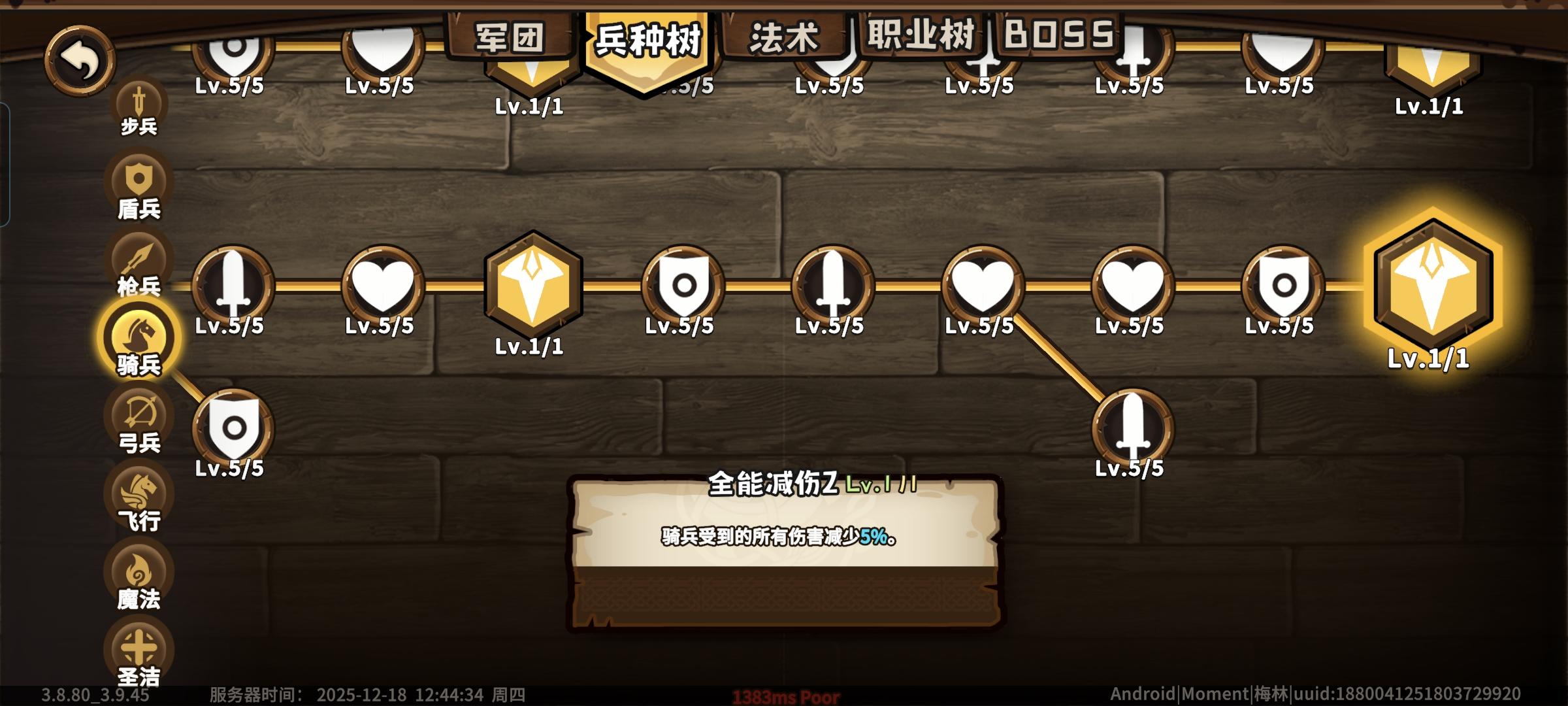 兵种科技共三大类,进阶兵种,基础数值和节点增减益,注意后两种增益只对小兵生效。