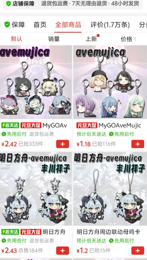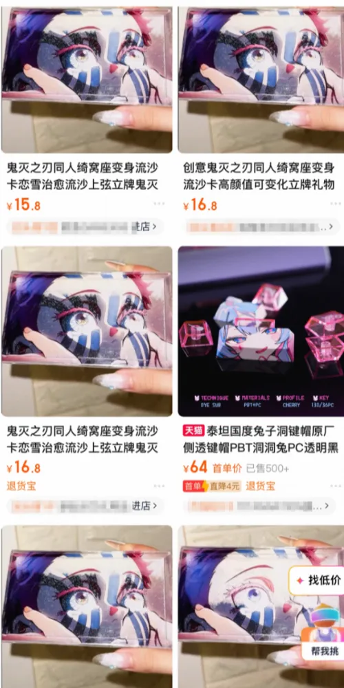 如果是可以自己复制的亚克力或者吧唧,那就要放在长期经营的大店铺里重复上架,侵权同人谷子和各种盗版官谷摆在一块,主打一个琳琅满目,让你直接放弃维权打算。