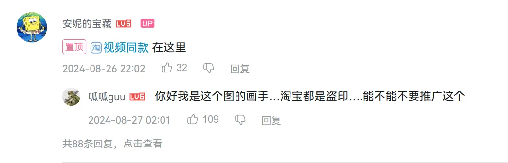 但实际上,这些谷子都是盗印或者抄袭的侵权作品。所以你仔细看评论区,往往都会看到出警的原作者。