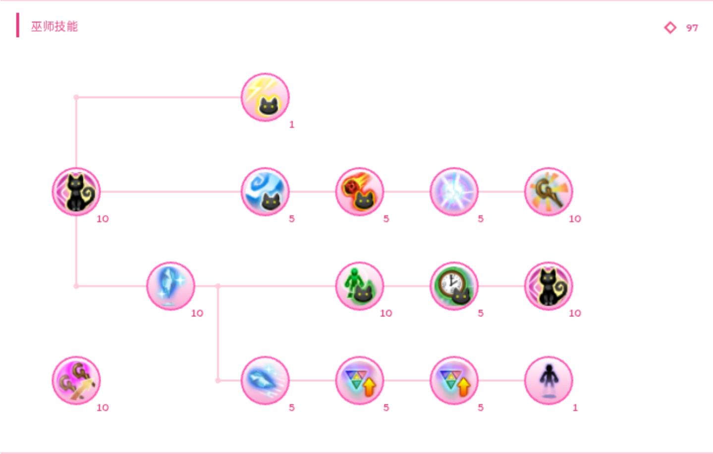 1、图中展示的技能加点,除巫师系可灵活调整外,其余技能均为固定不变的加点方案,如果未采用图中的某颗或全部星石,就要记得从巫师系抽取技能点,补给原星石代替的技能的需求点数。