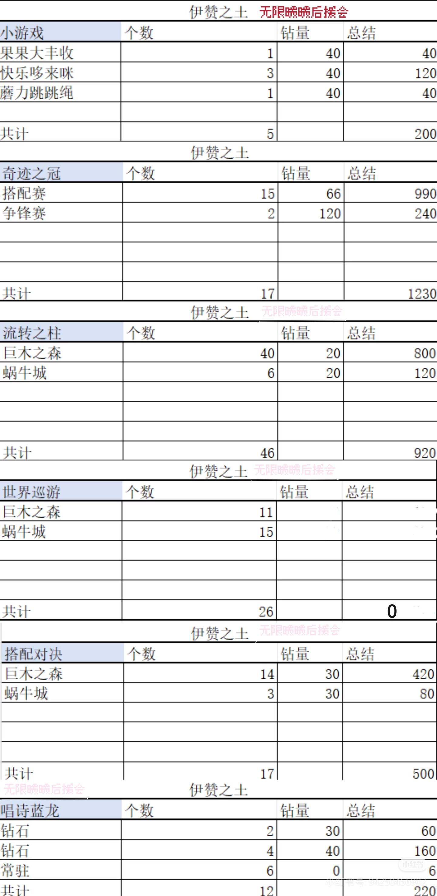 ❗️其它:见P6(含两种游戏+世界巡游+流转之柱+搭配对决+搭配赛中的一次性奖励+蓝龙)
