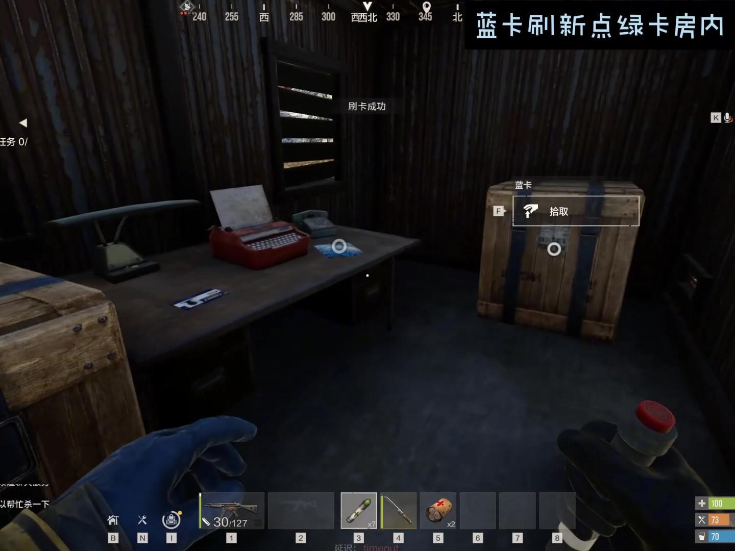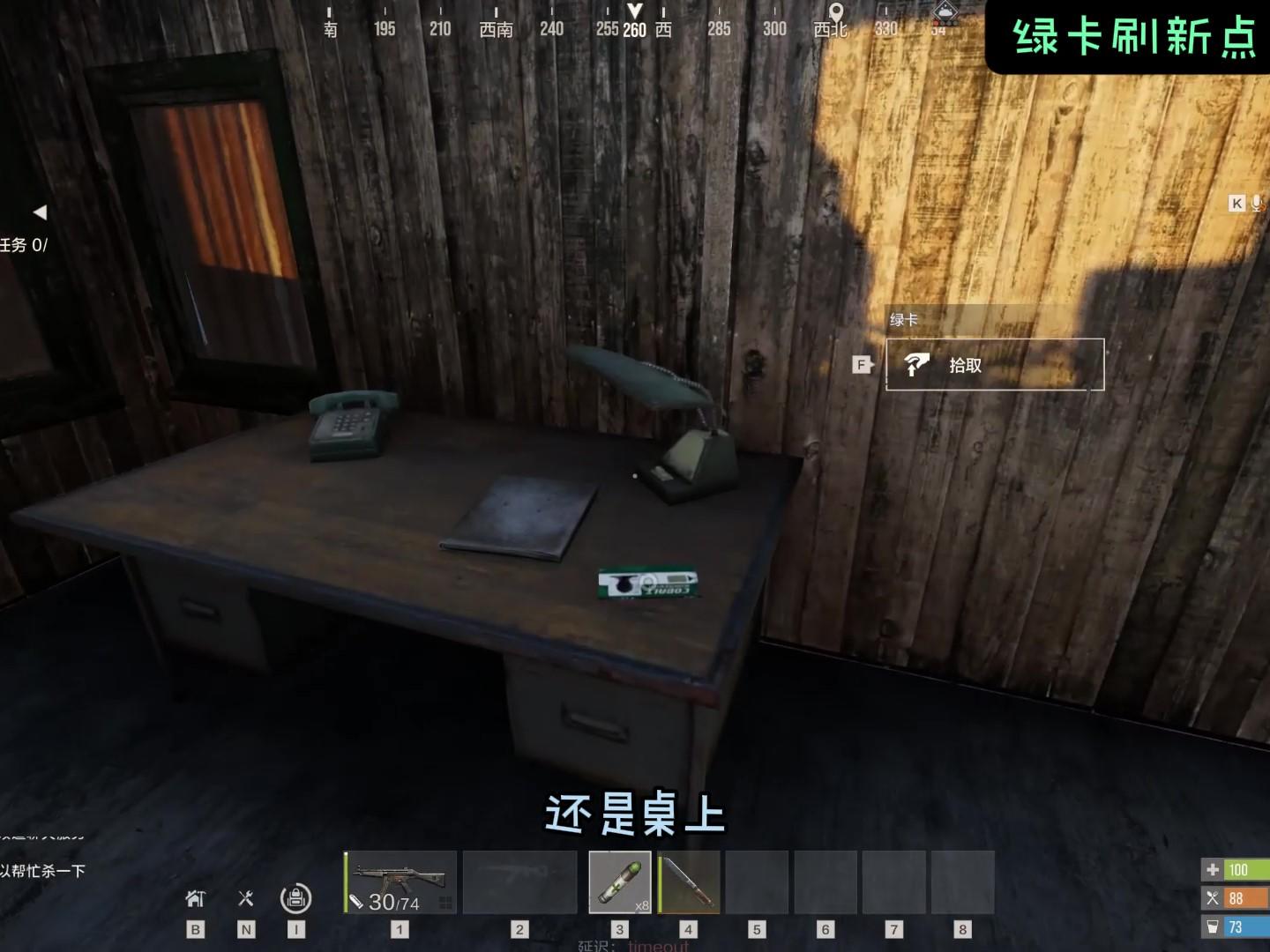 3、 红卡刷新点:污水处理厂绿卡房通电后二楼蓝卡房里屋桌子上