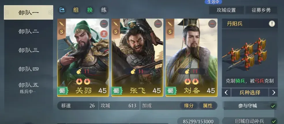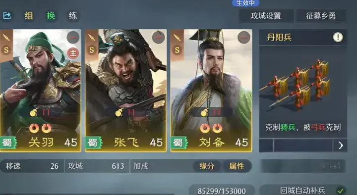 阵容本身强度高,契合 SLG 战斗机制,关羽抽取成本较高,对平民运气有一定投入要求,可以抽取情况而定;