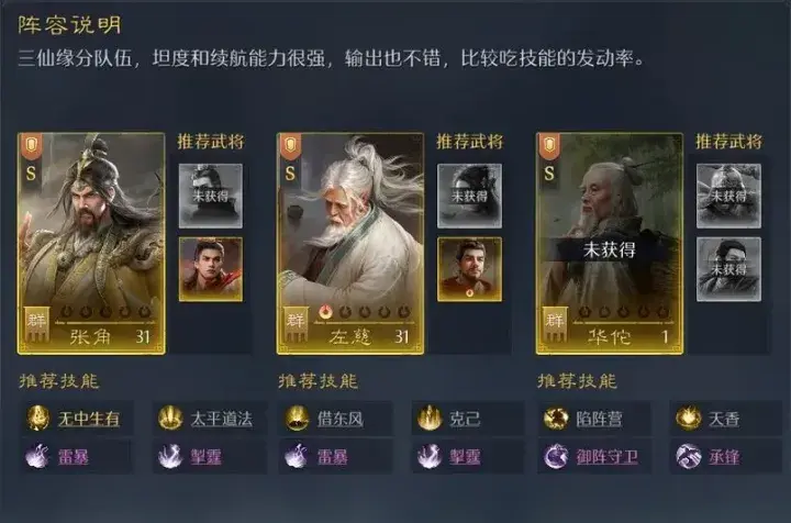 2.三仙队:华佗 + 左慈 + 张角