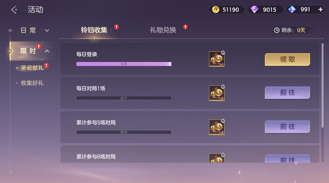 完成对局和登录任务获取铃铛,即可兑换新款挂件奇妙圣诞帽、一波一波表情、相当炸裂表情、星愿、英雄碎片等好礼。