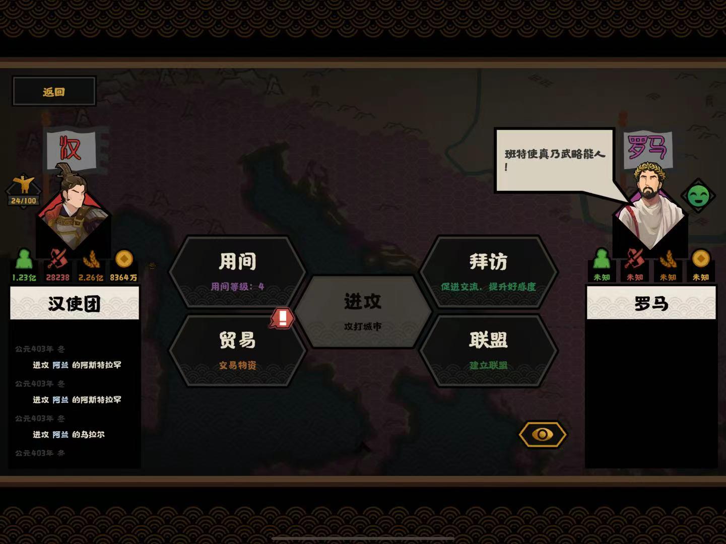 玩的时候发现的,如果和罗马的好感度高的话哈基良()会叫你班特使