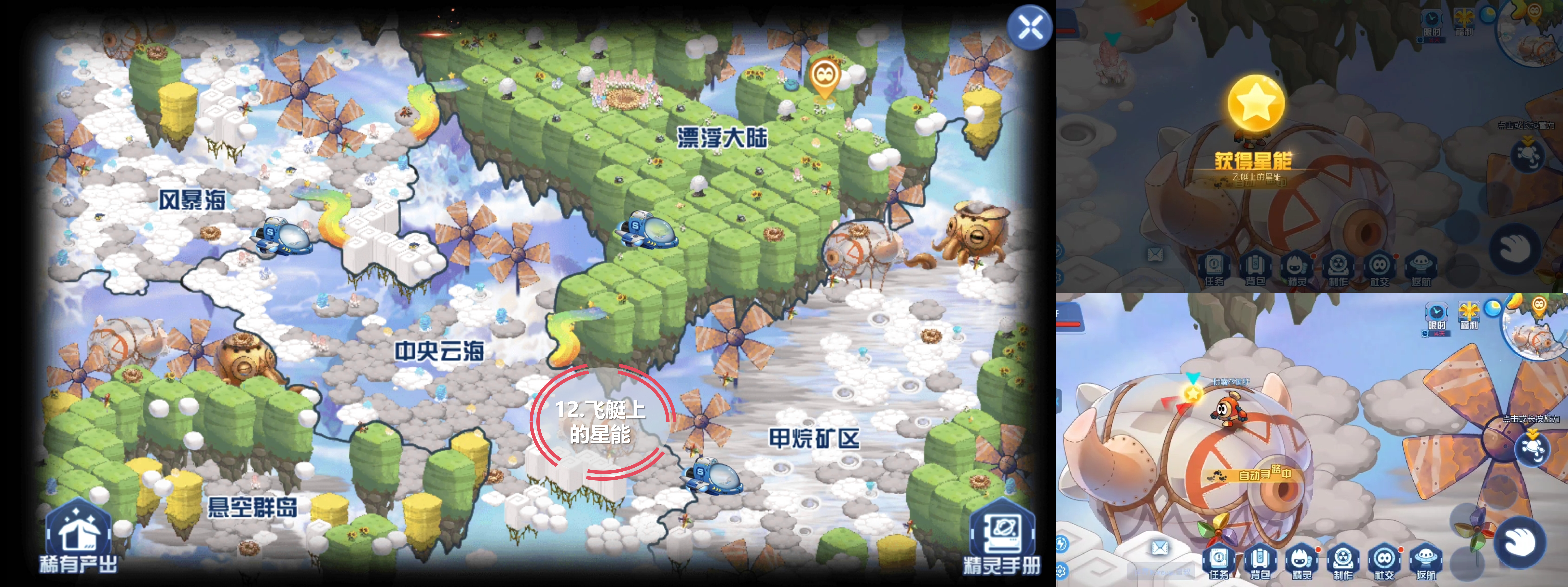位于[风暴海]北方(上方),可从左侧跳跳云跳到飞艇上前往,到达后即可遇到携带星能的〈浮空苗〉,击败或者捕捉即可掉落星能。