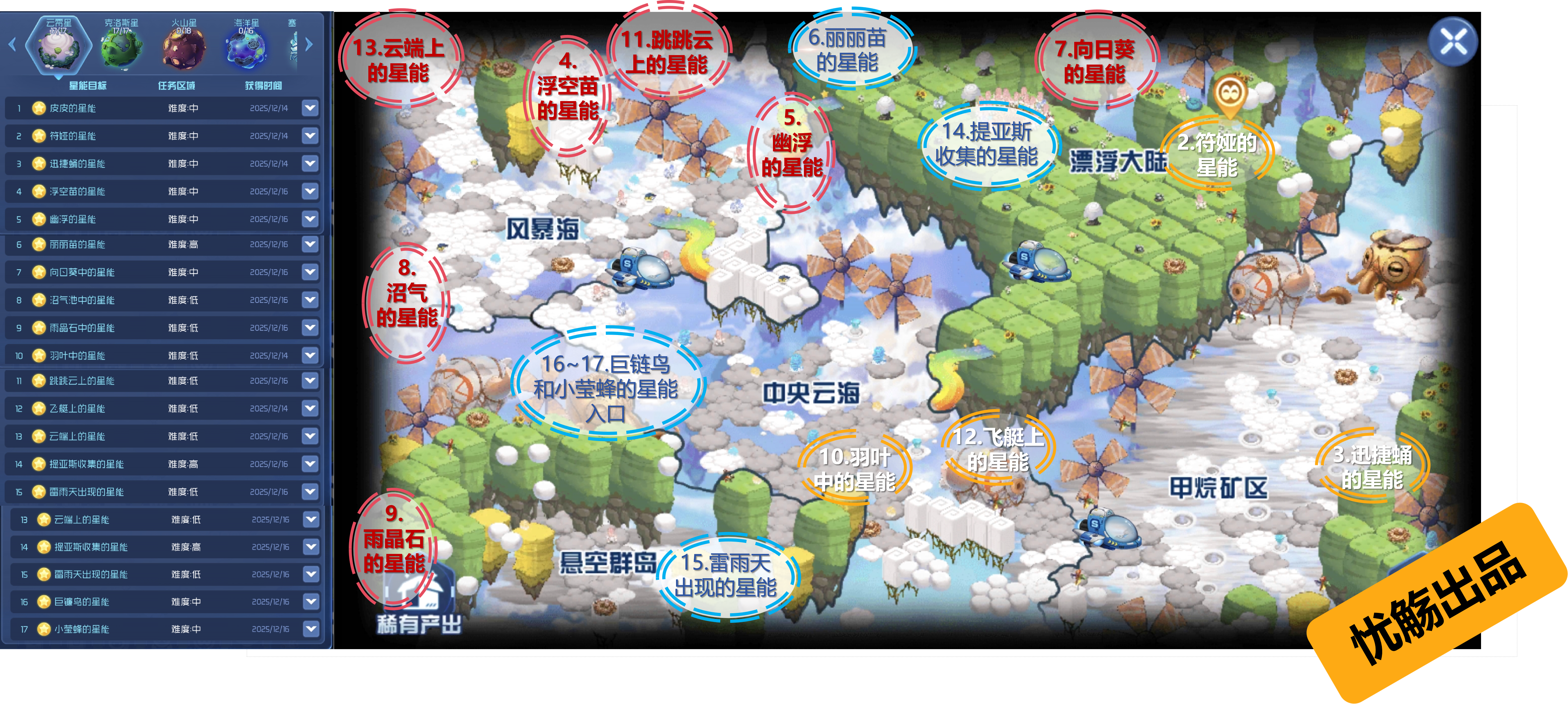 13. 星能:云端上的星能 | 难度:低整个地图的左上角,直接采集即可。