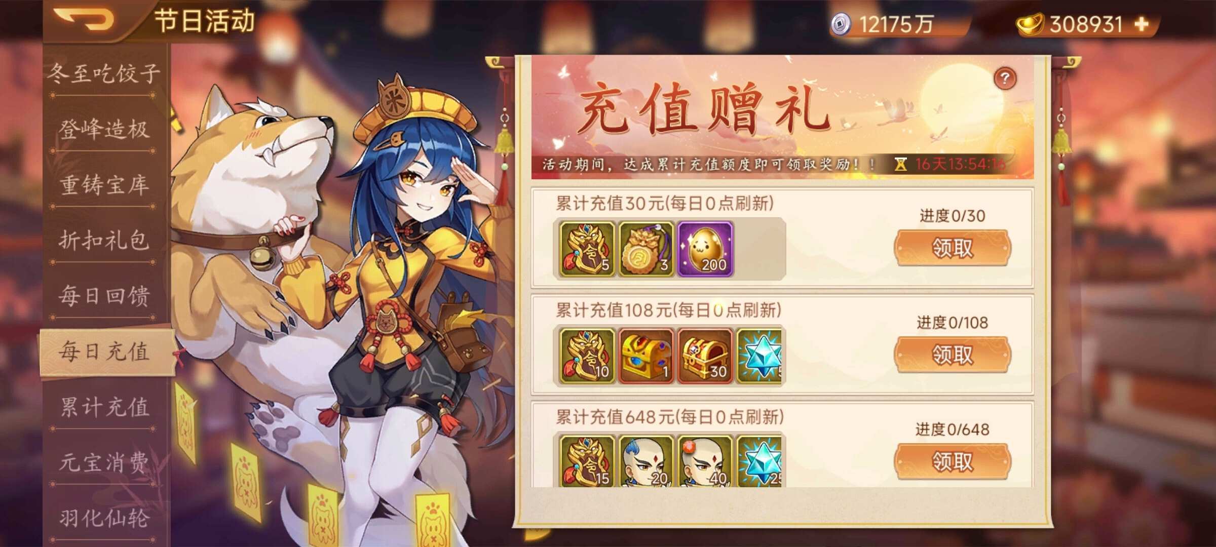 活动内容:活动期间,每日充值达成额度即可领取奖励!