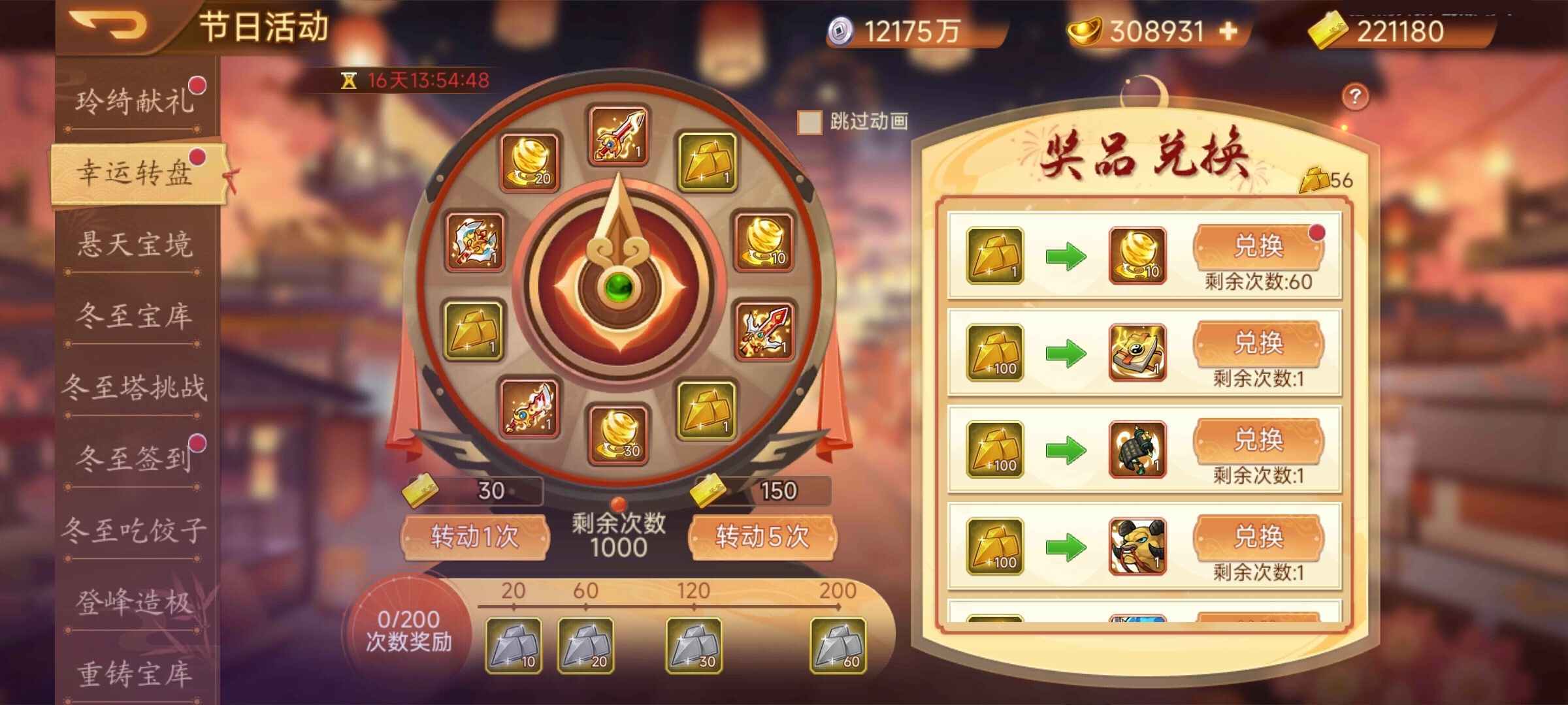累计转动仙轮达成指定次数可以获取额外奖励。