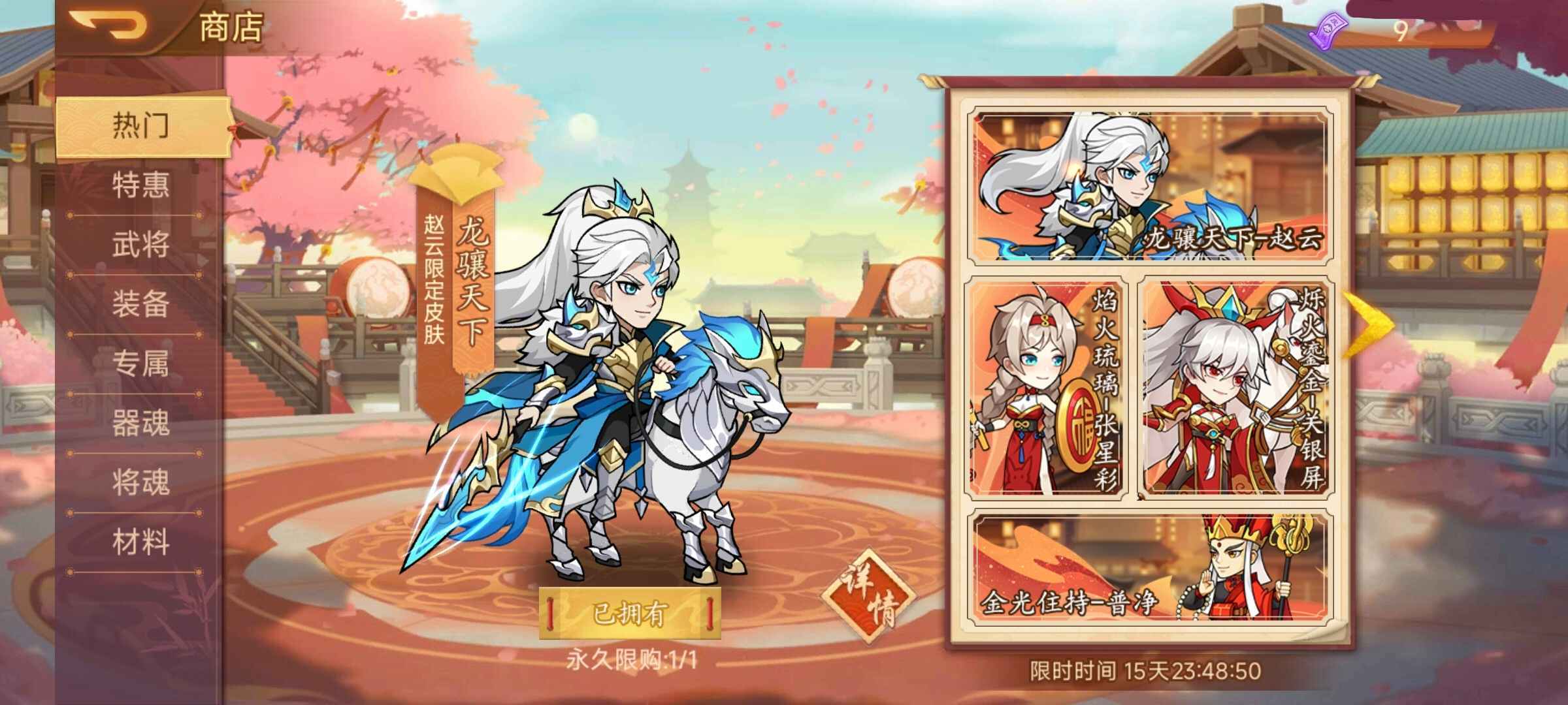 活动内容:赵云,普净,张星彩,关银屏限定皮肤商城热卖!
