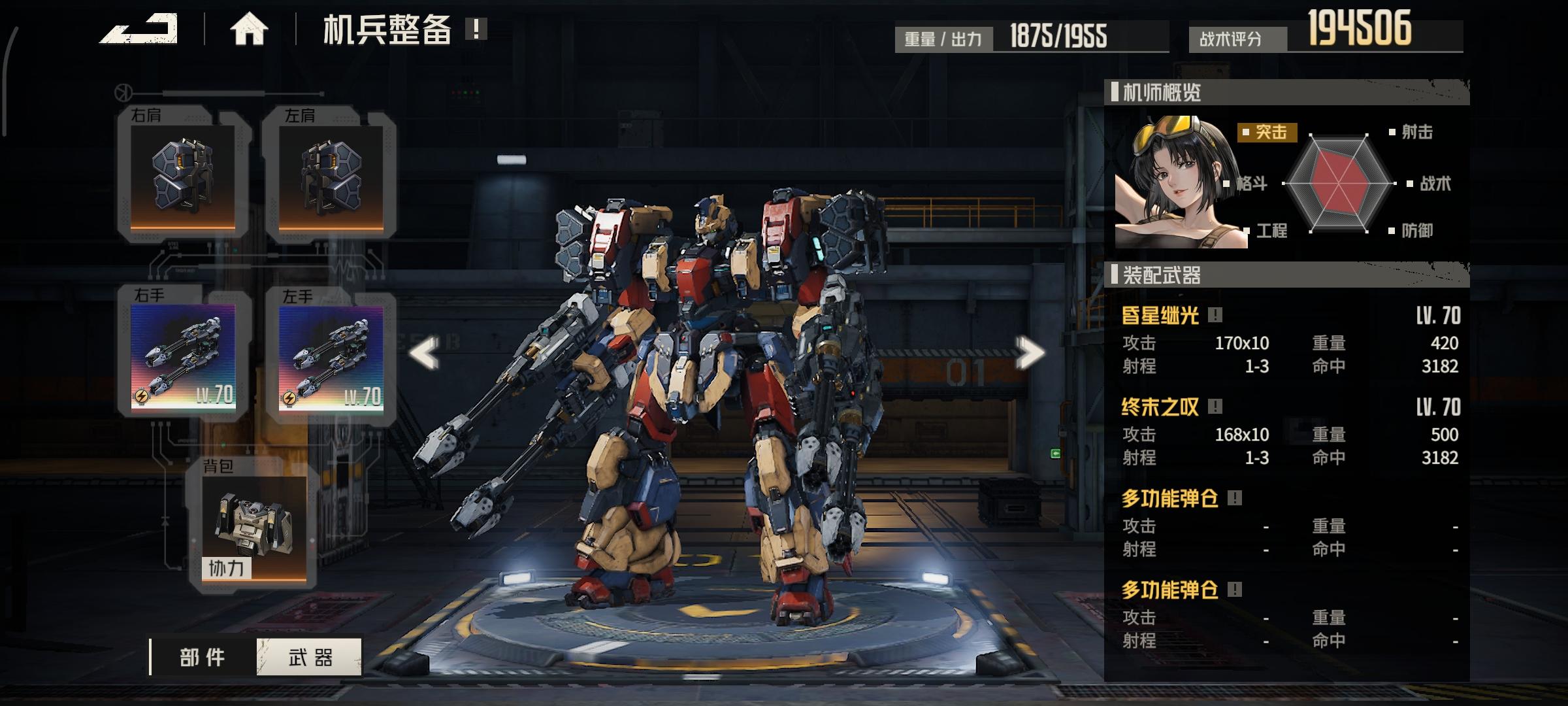 发现要用的武器太多了,因为最后形态的固定武器可以用所有武器的元件,所以元件要好好分配,搭配的好伤害真是爆表,共用武器的话,元件不好通用,还得给她单独做彩武,目前还不能伤害最大化真是尴尬啊